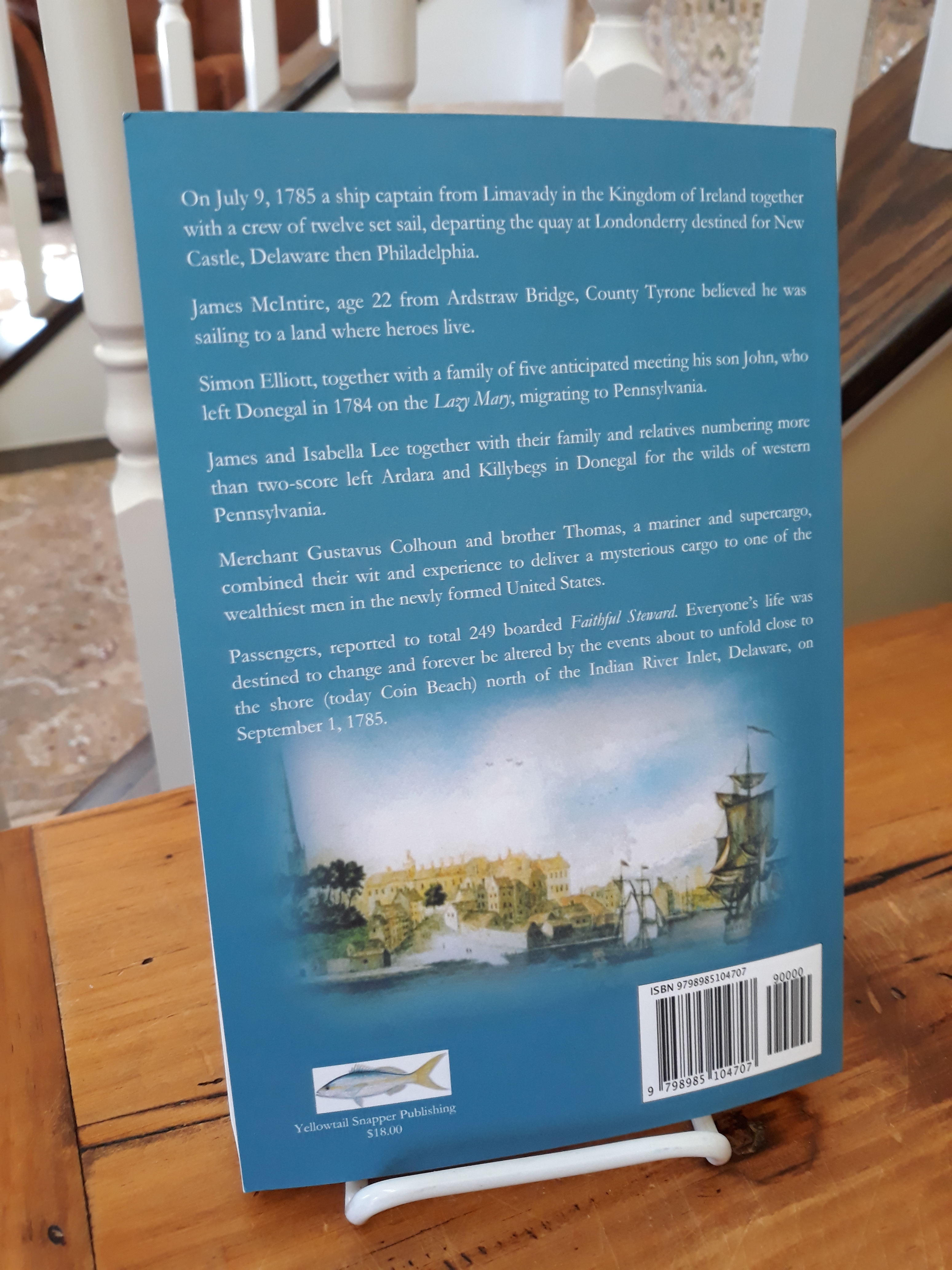 Author’s note – I found in my research some of the people on Faithful Steward, the Espey, Elliott, and McIntire families, for example, previously sent sons to Pennsylvania to scout available land for settlement. One of the Espey’s, and he wasn’t the only one, joined the Pennsylvania militia and fought in the war. Ben Franklin and General Washington believed without the Scots-Irish, most in the Continental Congress would have been imprisoned or hung for treason. With the Scots-Irish, they won the war. One historian commented – the involvement of Pennsylvania and the Scots-Irish in the revolution is an important story that has not been told. It’s time to tell the story of Faithful Steward and the passengers. It’s never been researched to this depth, and it’s a story that needs to be told.